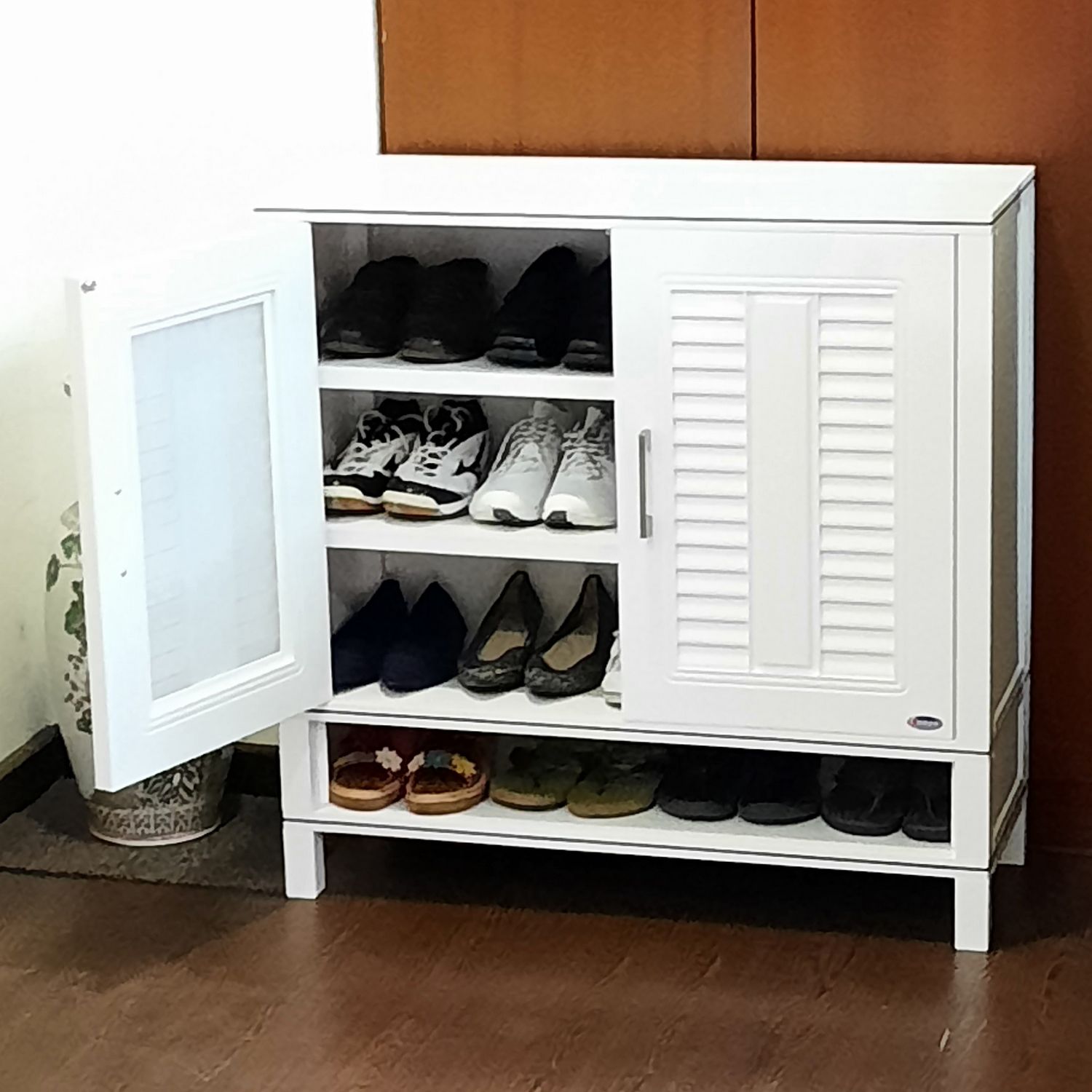 QUEEN SHOE 4-Tier 2-Ventilated Door Shoe Cabinet with Waterproof ABS Thermoplastic Material & Nano Coating (W88.5 x D34 x H88.5 cm)