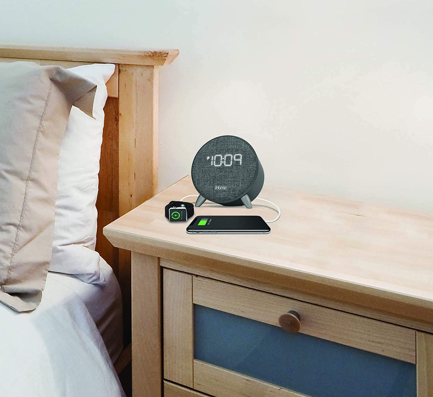 iHome iBT235G Bluetooth Digital Alarm Clock with Dual USB Charging and Ambient Nightlight [Gizmo Hub]