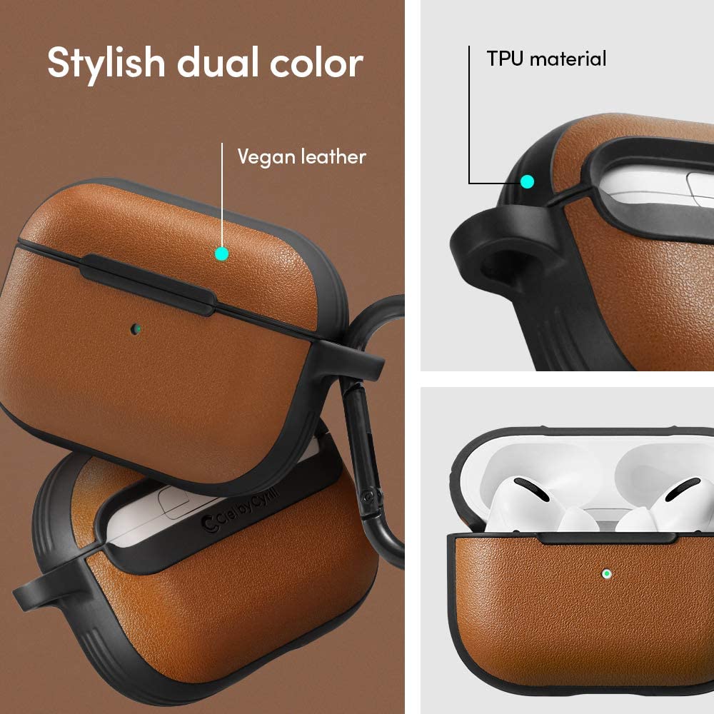 CYRILL AirPods Pro Case - LEATHER BRICK Black / Saddle Brown | Powered By Spigen