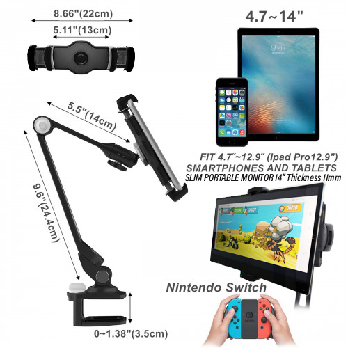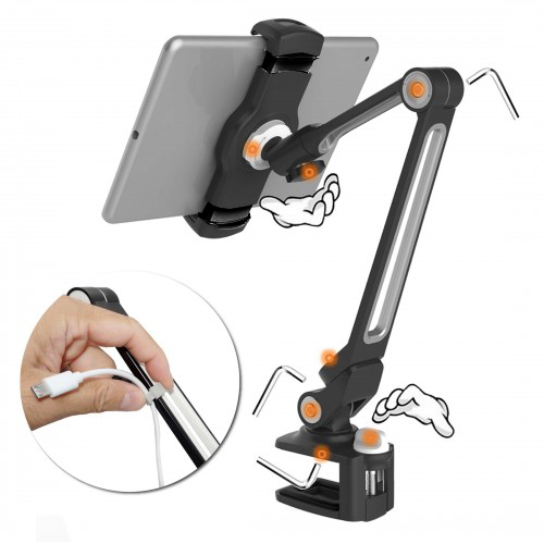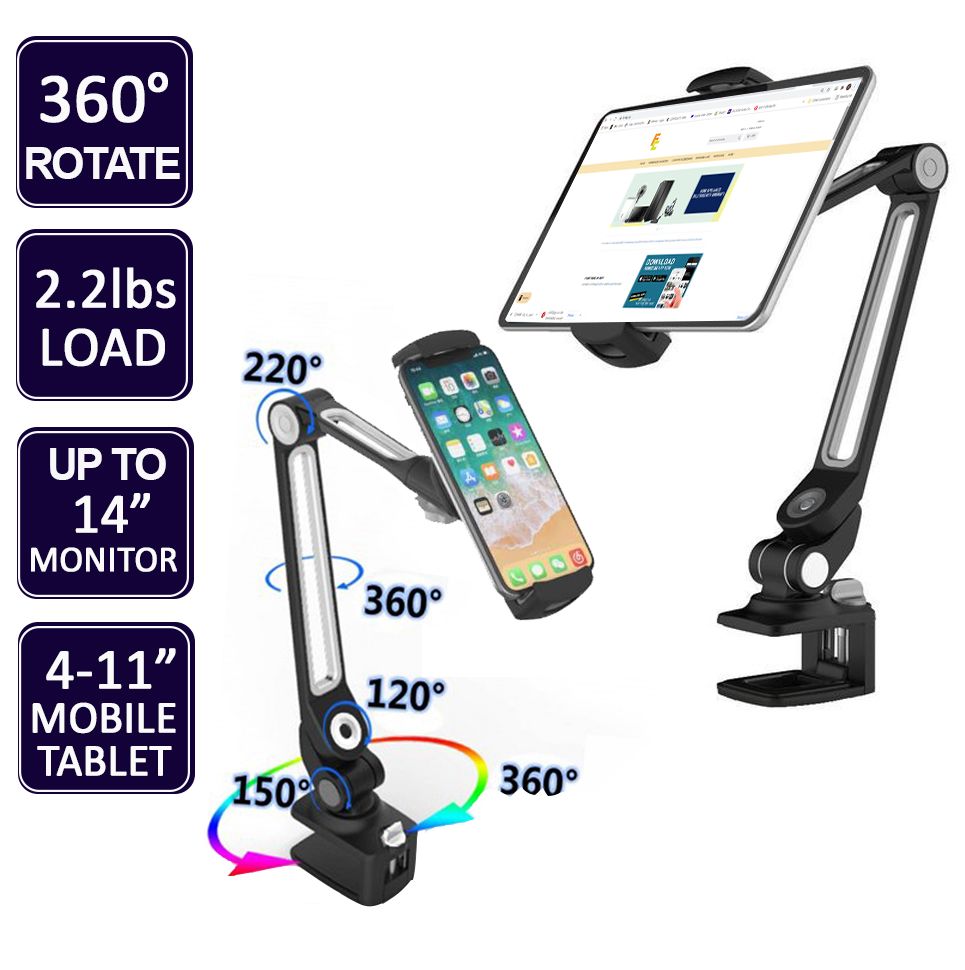 ULTi Clamp-on Tablet Holder for 4.7 to 12.9 inch Screens - Ergonomic Design: Swivel, Tilt & Rotate
