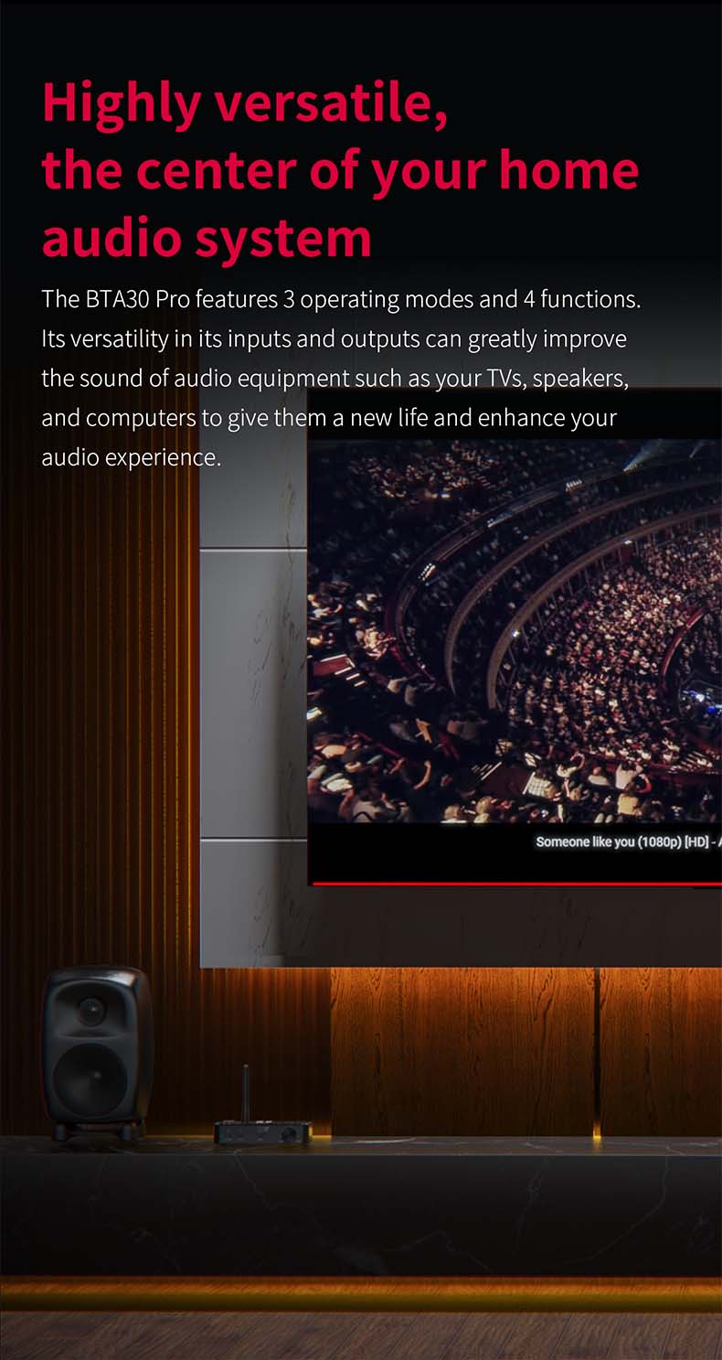 >BTA30 Pro can serve as a high-fidelity desktop DAC if you require it to be. It supports not only Bluetooth and USB as input ports but also has SPDIF Coaxial and Optical digital inputs.