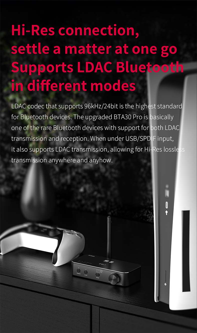 >Presenting you the all-new high-resolution Bluetooth transmitter+receiver from the house of FiiO, the BTA30 Pro. BTA30 Pro comes as a direct successor to the highly-acclaimed BTA30 BT transmitter with a premium ESS Sabre DAC chip, high-performance DSP chip, and many new features. Create a comprehensive Bluetooth desktop system at your home with the advanced BTA30 Pro today!!