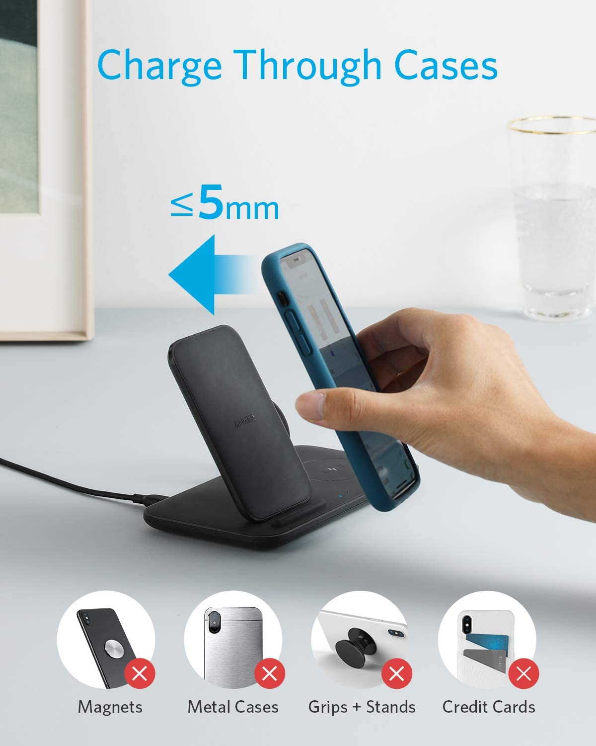 • Cases made of metal and attachments such as magnets, cards, and grips will interfere with charging.