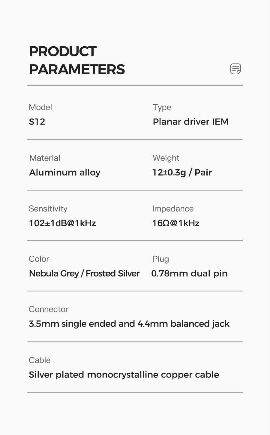 Shuoer S12 | 14.8mm Planar Magnetic Driver IEM Hi-Fi Earphones with Silver Plated Monocrystalline Copper Cable 3.5mm Headphones