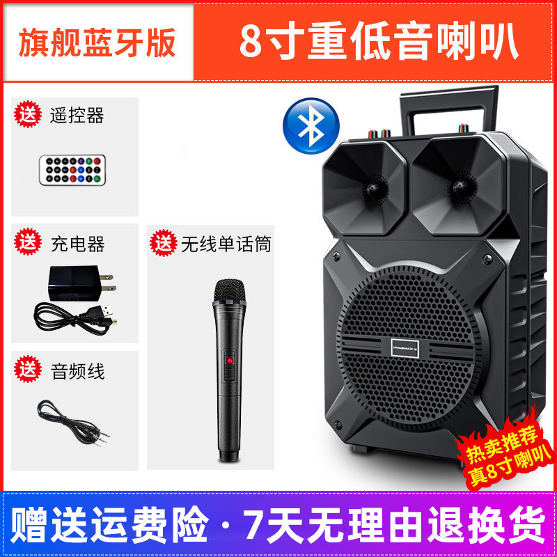 High-Power Pull Rod Square Dance Audio Outdoor Karaoke Bluetooth Speaker with Wireless Microphone Home Singing Subwoofer