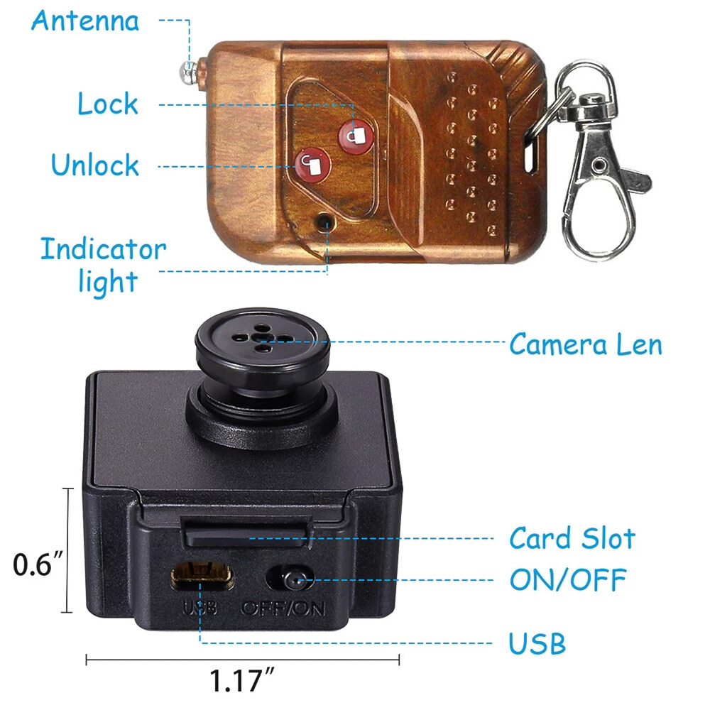 Winstong Tech 1080P T-shirt Button Mini Camera Video Recorder Portable DVR Security Body Hidden Micro Camcorder with Remote Controller