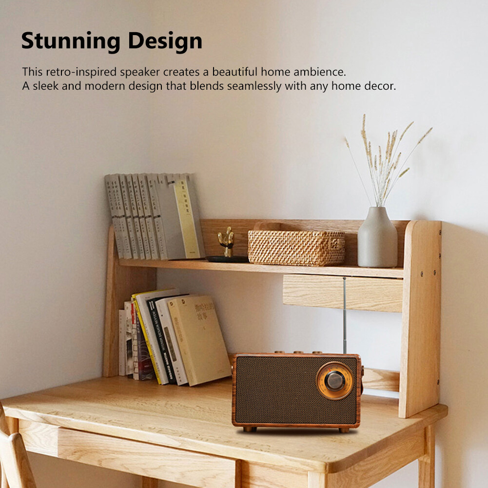 4. Stunning Design: This retro style speaker creates a beautiful home atmosphere. A sleek and modern design that blends seamlessly with any home decor. Put it in any room for a luxurious feel.