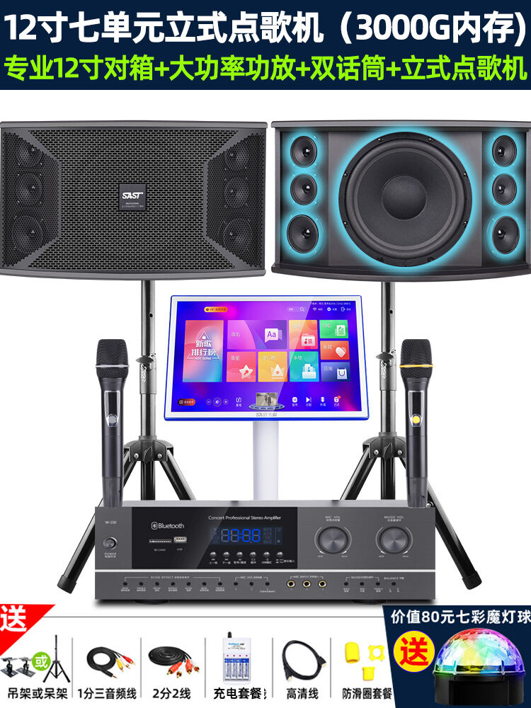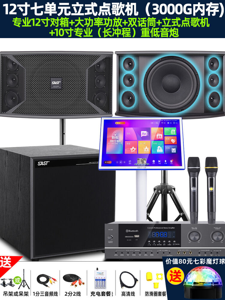 SAST Family KTV Audio Set Karaoke Machine Full Set Home Theater Living Room Karaoke Player All-in-One Professional Card Box Singing System Speaker Amplifier Microphone Special Equipment