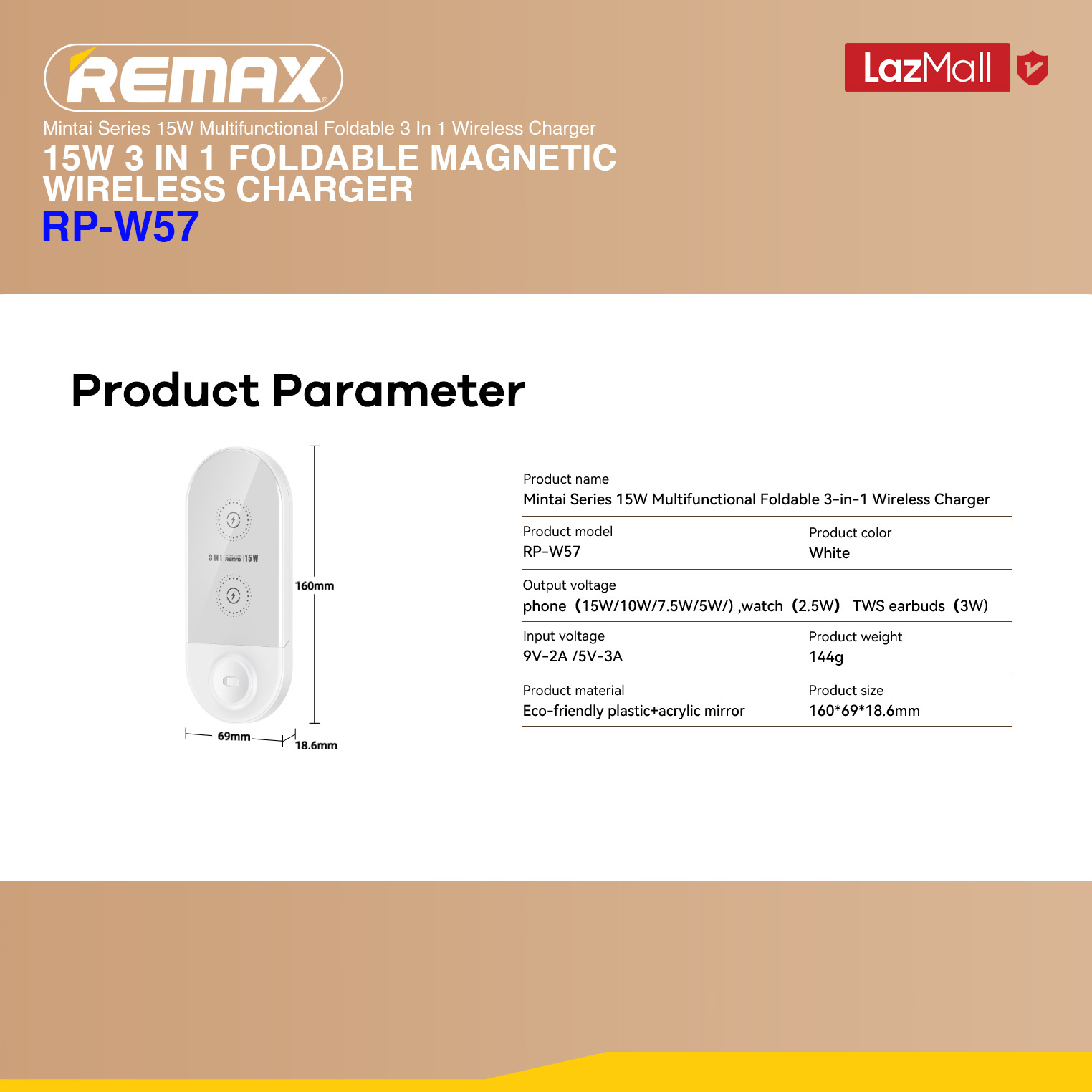[Remax Energy] RP-W57 Mintai Series 15W Multifunctional Foldable 3-In-1 Wireless Charger