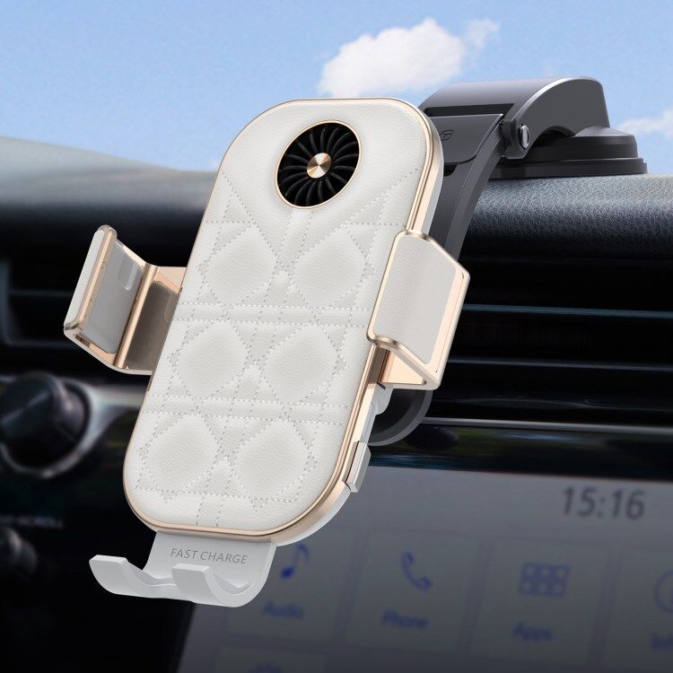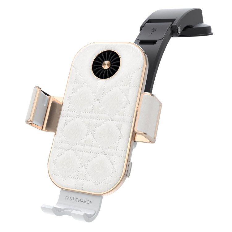 Baseus C38 Grid Texture PU Leather Coated Mobile Phone Holder Wireless Charger with Cooling Fan for Samsung Galaxy Z Flip3 / Flip4 / iPhone