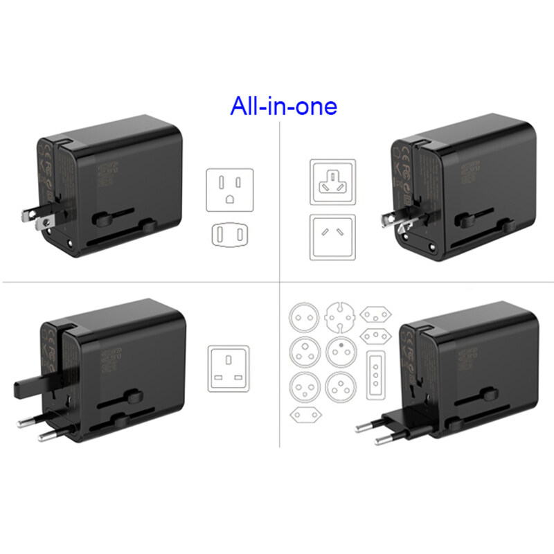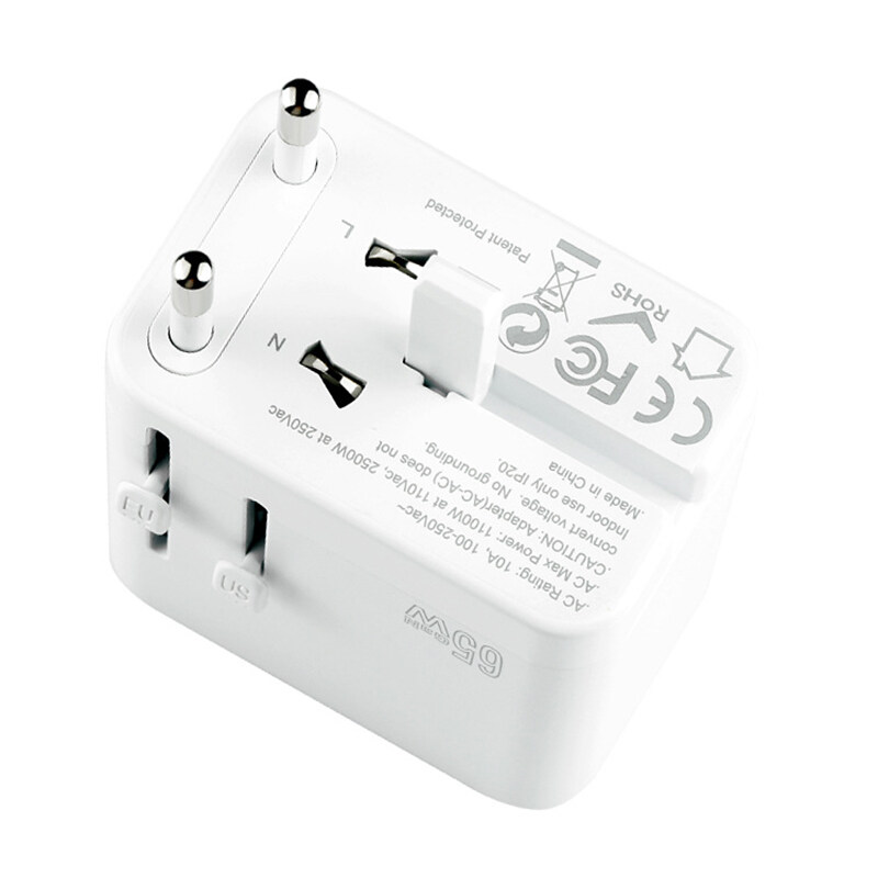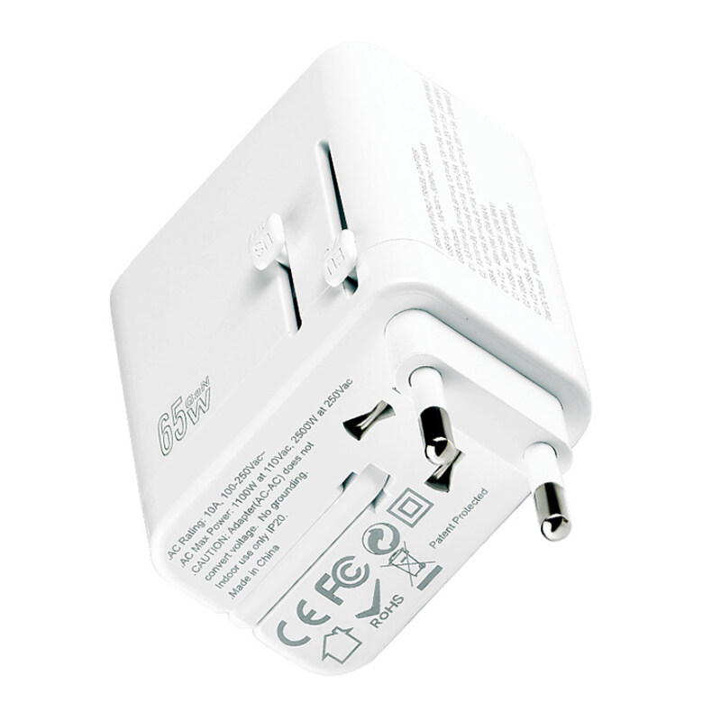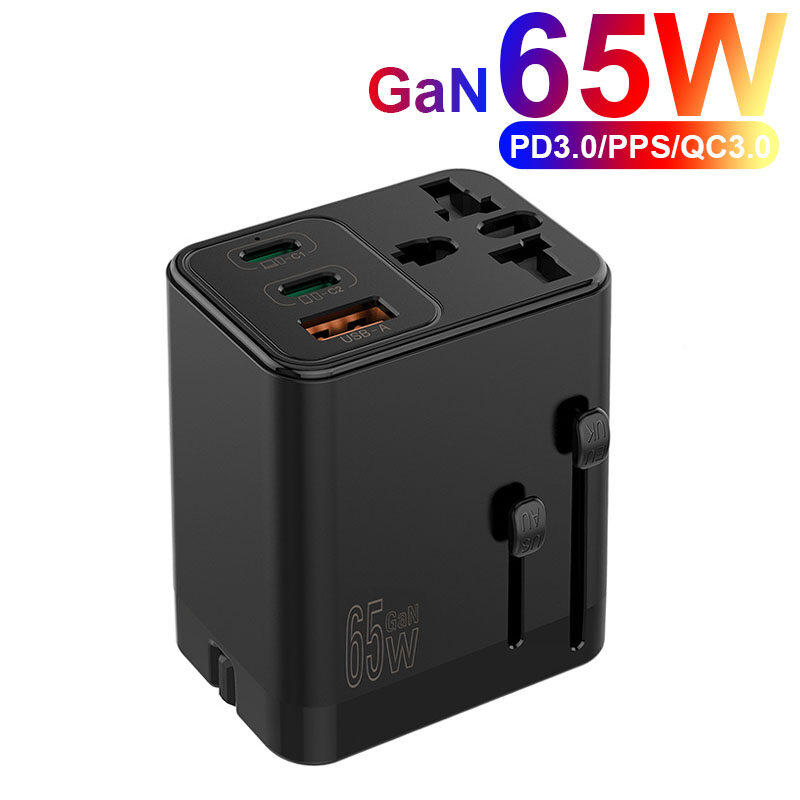URVNS 65W GaN Travel Plug Adapter with 2USB-C PD and 1USB-A Worldwide Universal Charger UK EU AU US Converter for Laptops Phones Tablets