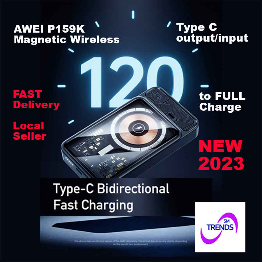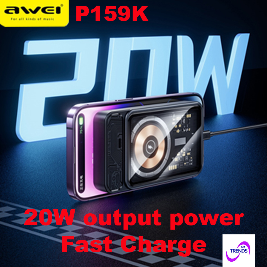 Awei P159K 15W Light Magnetic Wireless Power Bank 20W PD 10000mAh Type-C Fast Charge Portable Power Bank for Xiaomi Samsung