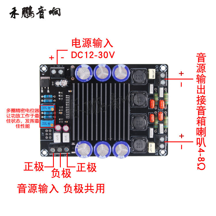 In order to ensure the lossless and smooth audio signal, the audio path adopts 1% precision low-temperature drift platform resistance (not patch resistor), and the board has output DC precision calibration circuit. Super large heat sink to meet the heat dissipation requirements of high power.