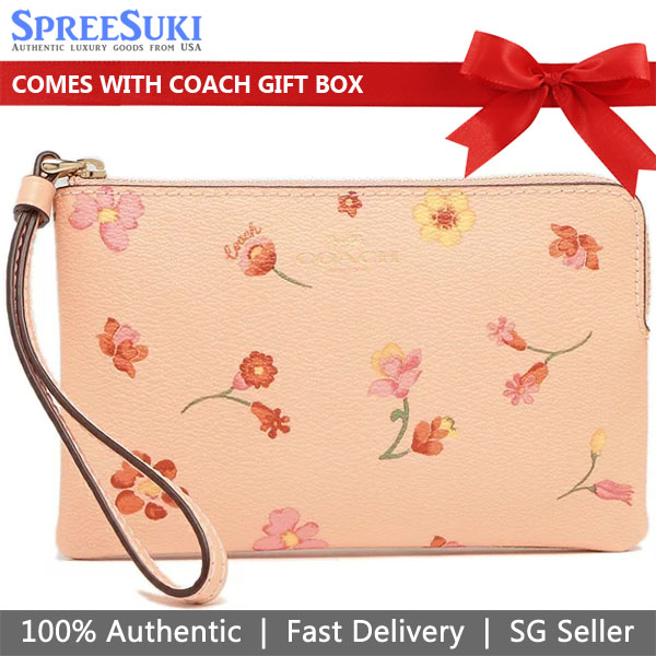 Coach Wristlet In Gift Box Small Wristlet Mythical Flower Corner Zip Faded Blush Orange Red # C8701