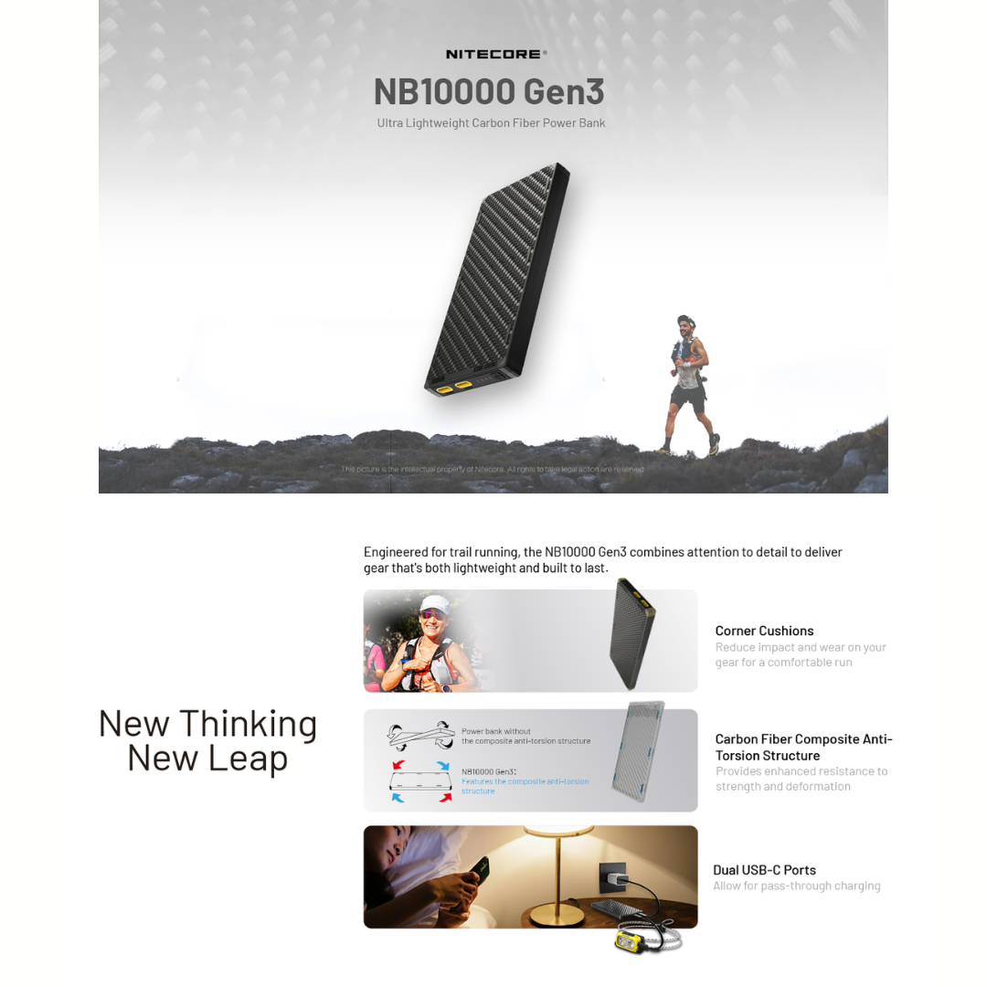 Nitecore NB10000 Gen 2 (USB-A+USB-C) / Gen 3 (USB-C x 2) Quick-Charge Dual Port 10000mAh Power Bank Powerbank
