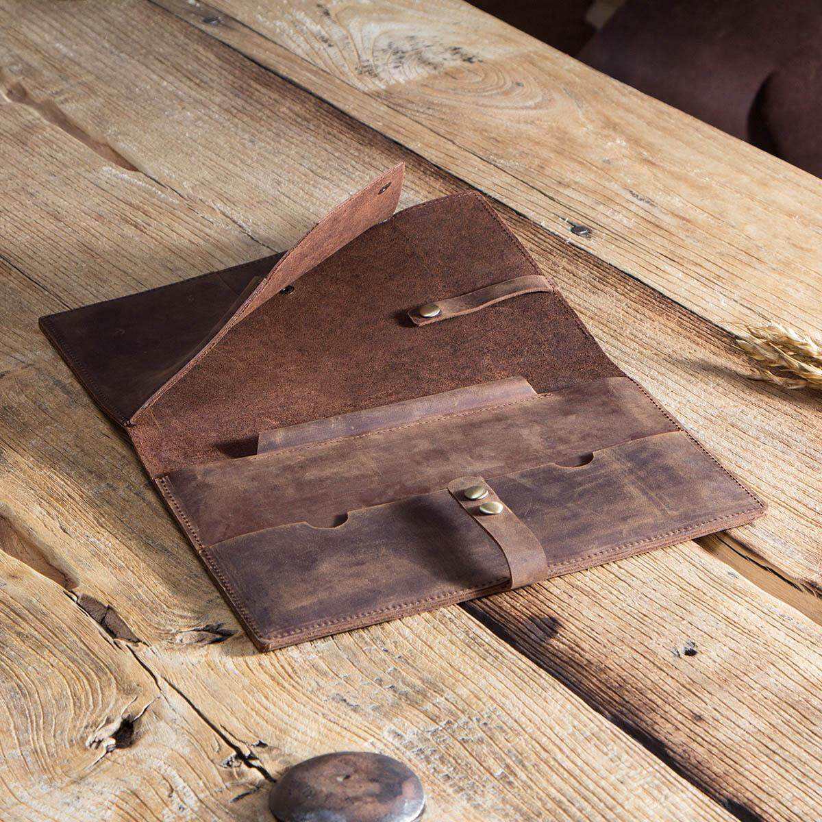 CONTACTS FAMILY Retro Crazy Horse Cow Leather Case For iPad 9.7 10.2 10.5 10.9 11 inch iPad Air 5 MacBook Tablet Laptop Pouch Notebook Bag