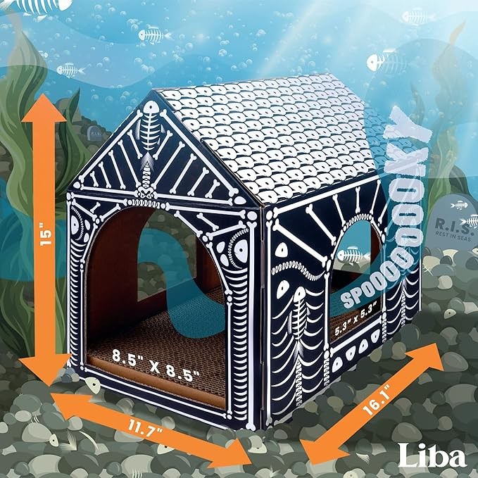 LiBa Cardboard Cat House with Scratch Pad and Catnip, Cat Bed for Indoor Cats, Cat Scratcher, Halloween Decorations Halloween Cat Toys Gifts for Cats Fish Bone Visit the LiBa Store